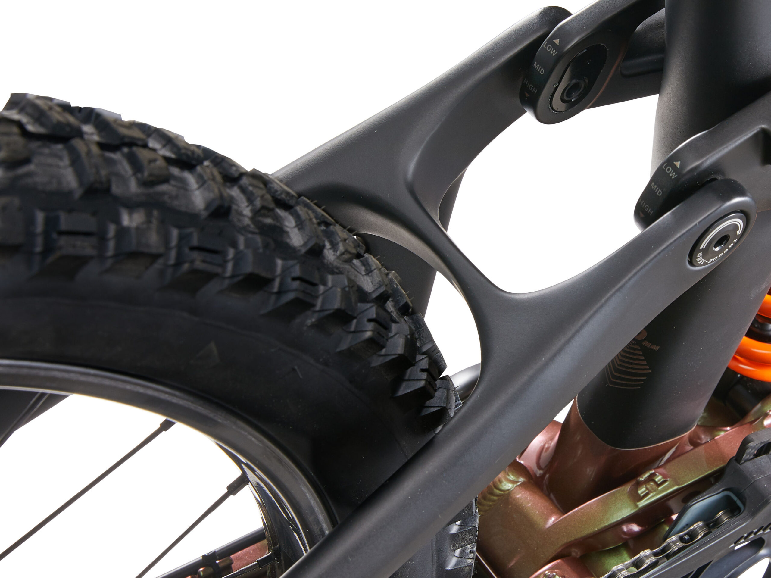 A new Maestro rear suspension system with longer travel (160mm) was developed and tested under the extreme conditions of Enduro World Series races. The trunnion mount shock has a longer stroke (62.5mm compared to 60mm on the previous generation). And the Advanced Forged Composite upper rocker arm adds stiffness and lowers overall weight.